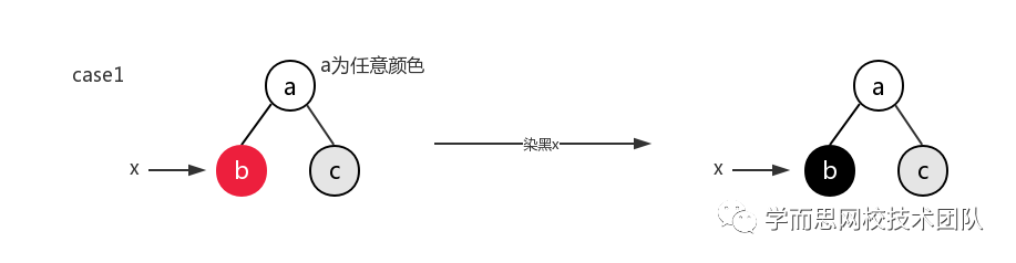这里有个小问题,如果node的color本身就是红色,x.color也是红色,可能无法保持红黑树的基本性质。
