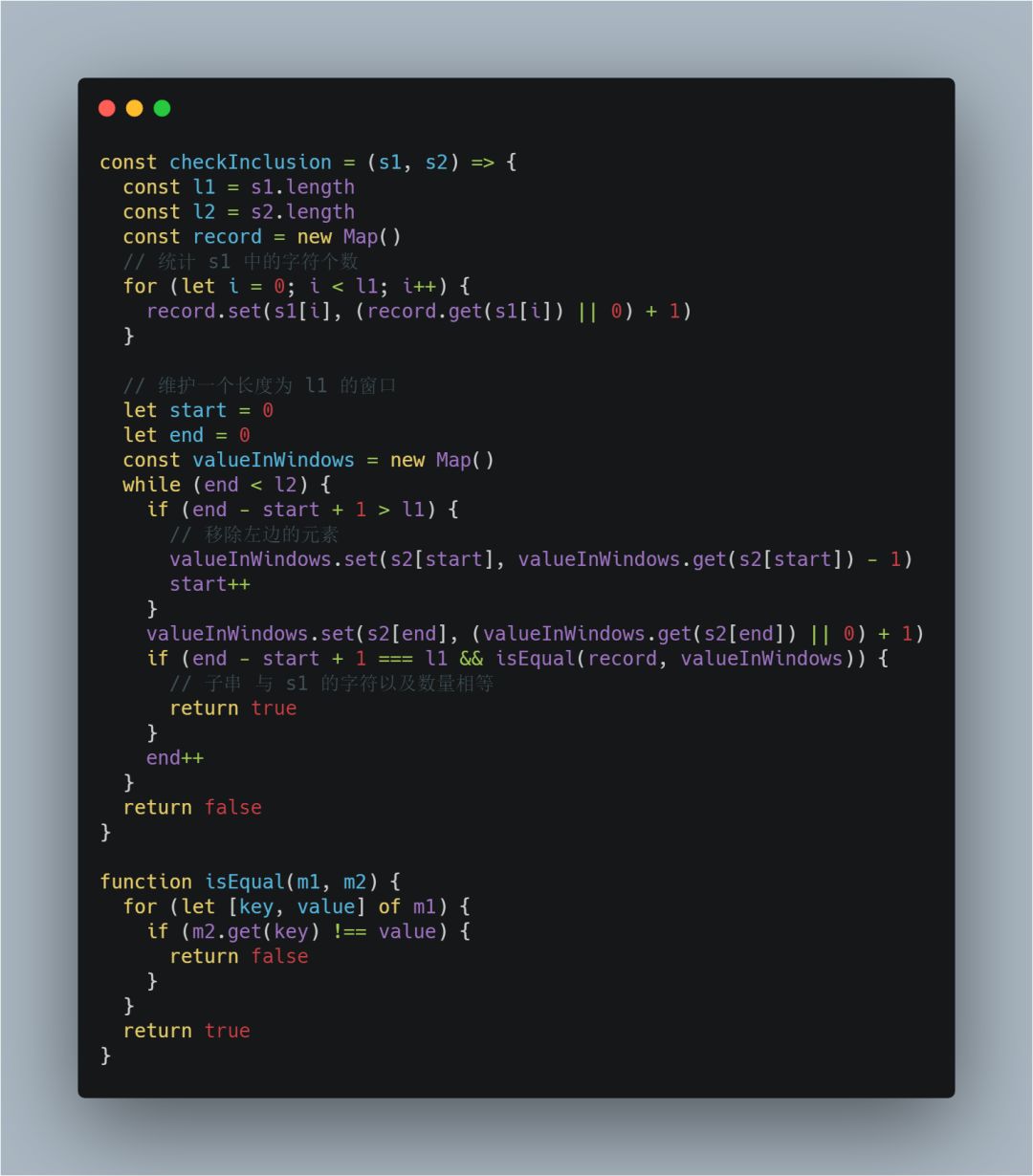 那么结合滑动窗口算法,需要维护一个长度为 s1 字符串长度的窗口,并且窗口中的字符以及相应的数量与 s1 相同。