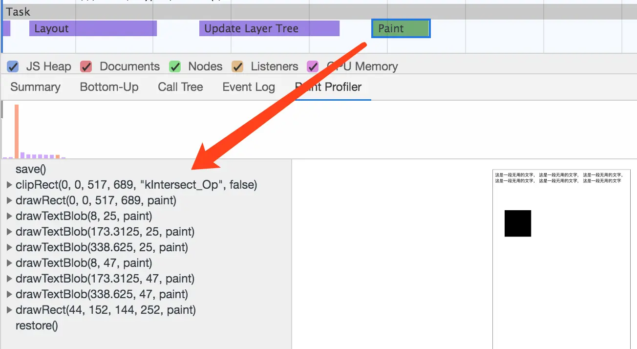 在Paint这个阶段,浏览器会根据Layer Tree,生成Paint Records。
