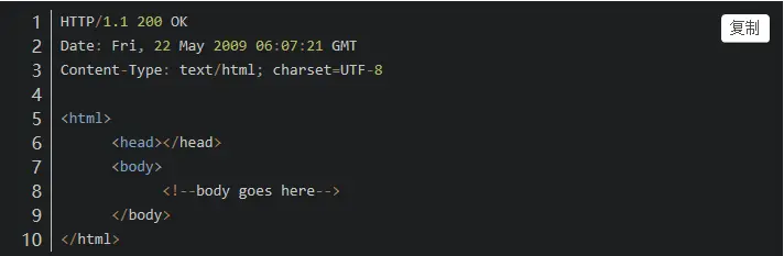 第一行,报文协议(http)/版本 状态码 状态描述,状态码和状态描述在最后会讲
