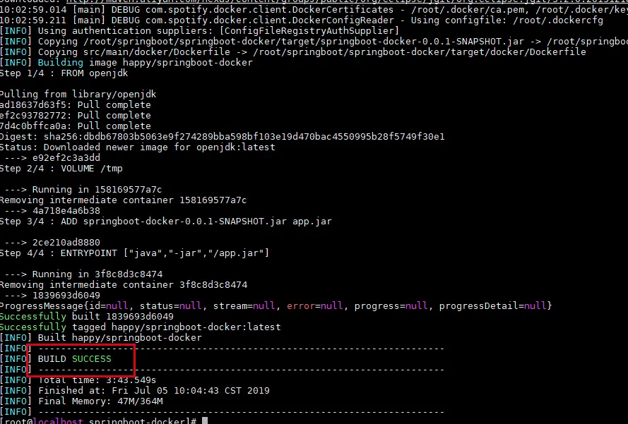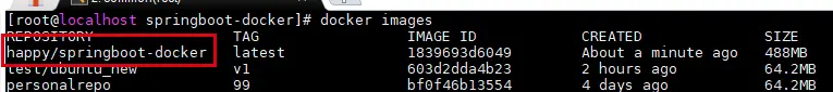 看到BUILD SUCCESS即表示构建成功了,这时候就可以通过docker images命令,查看我们构建的镜像了: