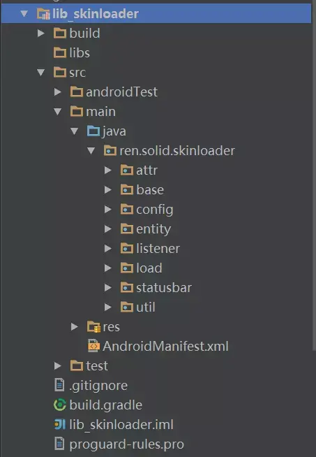 这里我们直接来看看lib_skinloader这个库吧(这里面的内容大部分是来源于Android-Skin-Loader这个框架,我只做了部分修改,主要是适配AppCompatActivity,原框架是基于最初的Activty开发的,在这里再次感谢开源作者),这个库就是今天所讲的核心内容