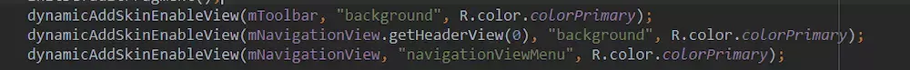 这个方法其实就是去搜集View中换肤的时候可以更改的属性,当我们换肤的时候就是去更改的这些属性的值,这里你必须要注意一点,这个属性的值一定要是引用类型的(例如:@color/red),千万不能写死,第二个if的判断就是这个作用。到这里可能你就会有个疑问,我怎么知道哪些属性在换肤的时候需要更改。如果你细心一点肯定注意到了这行代码