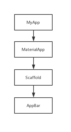 上面代码的Widget树如下所示,遵守Material Design准则的flutter应用的Widget树大致也是如此。