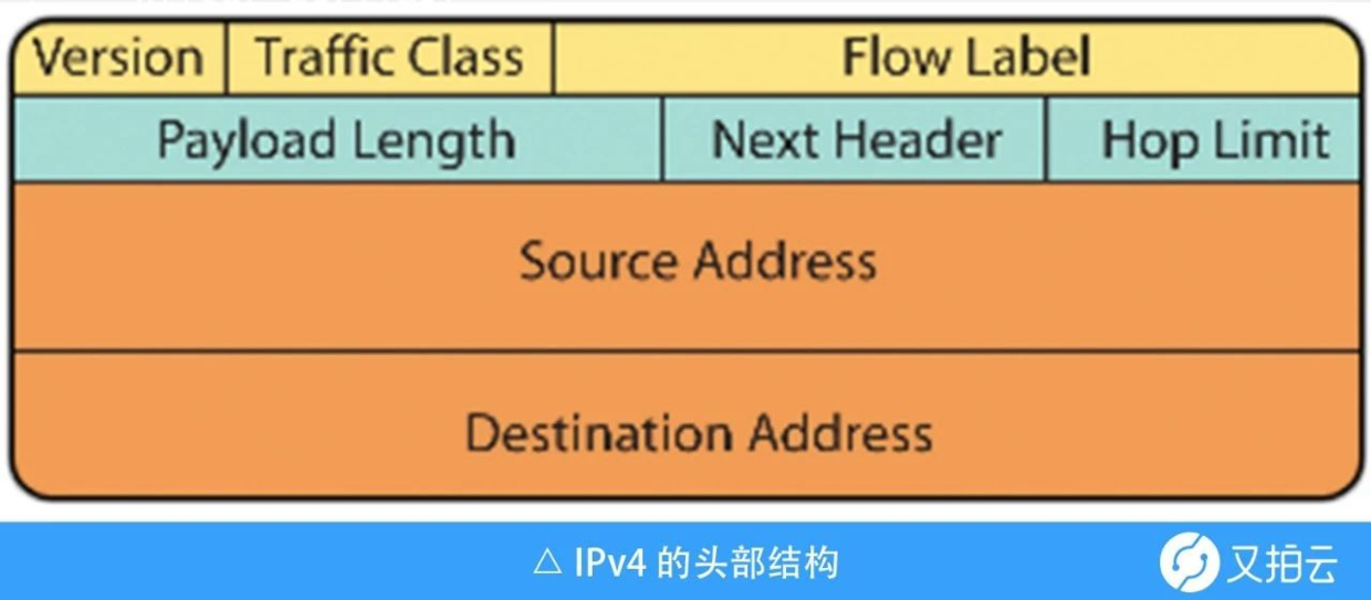 IPv4 包头结构包含 20 个字节的数据,并包含了可选字段,从而迫使中间路由器检查 IP 包头是否包含可选字段。另外在 IPv4 数据包头中,这些可选字段具有一定的最大允许大小。