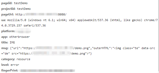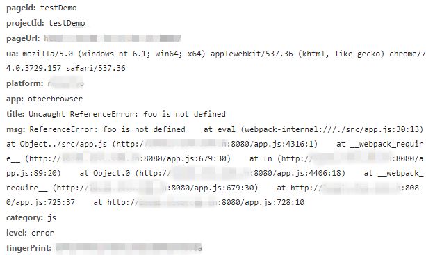 e.g: 下图是当使用了未定义的变量"foo",导致产生js运行时错误时的上报数据: