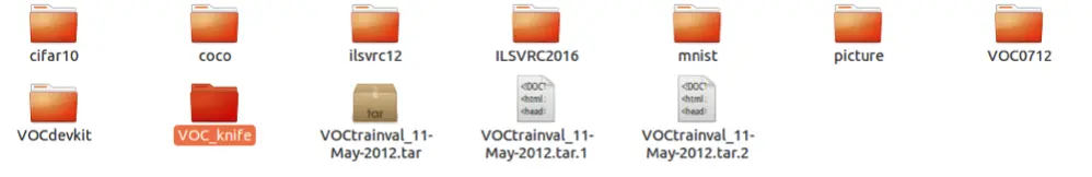 在data文件夹下新建自己训练数据的VOC格式文件(VOC_knife):