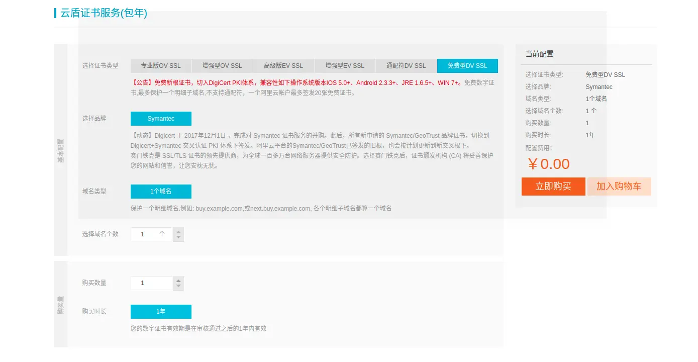 选择免费型DV SSL点击立即购买