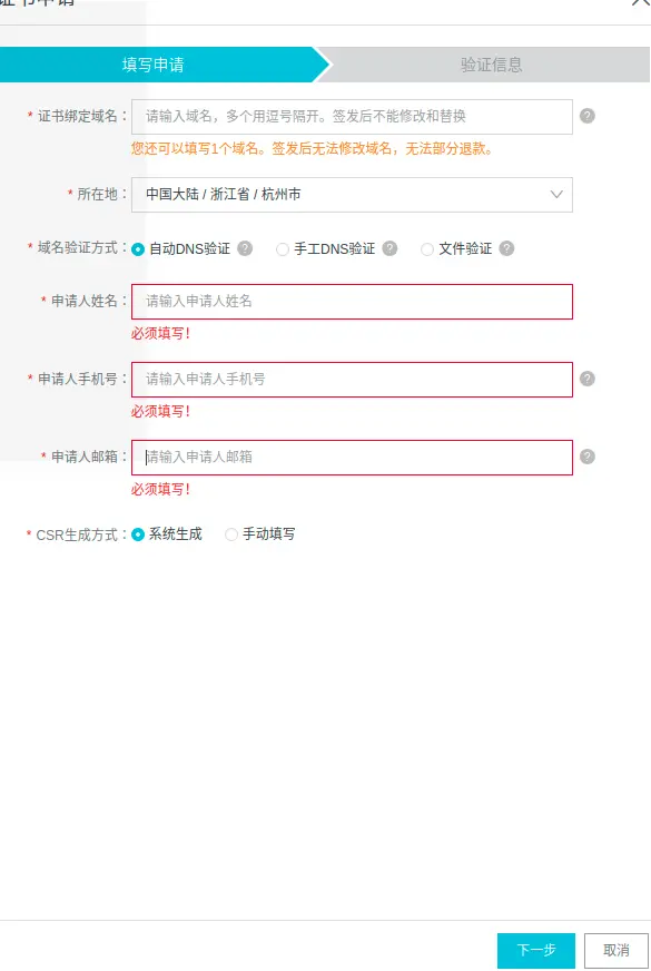 填写申请和验证信息(申请通过要等一会时间)