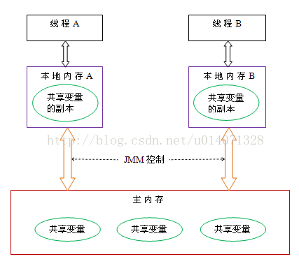 如上图所示:对我们的项目有一个主内存,这个主内存里面存放了我们的共享变量、方法区、堆中的对象等。