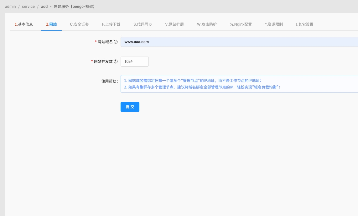 3.填写域名:www.aaa.com(这里填写自己的域名)