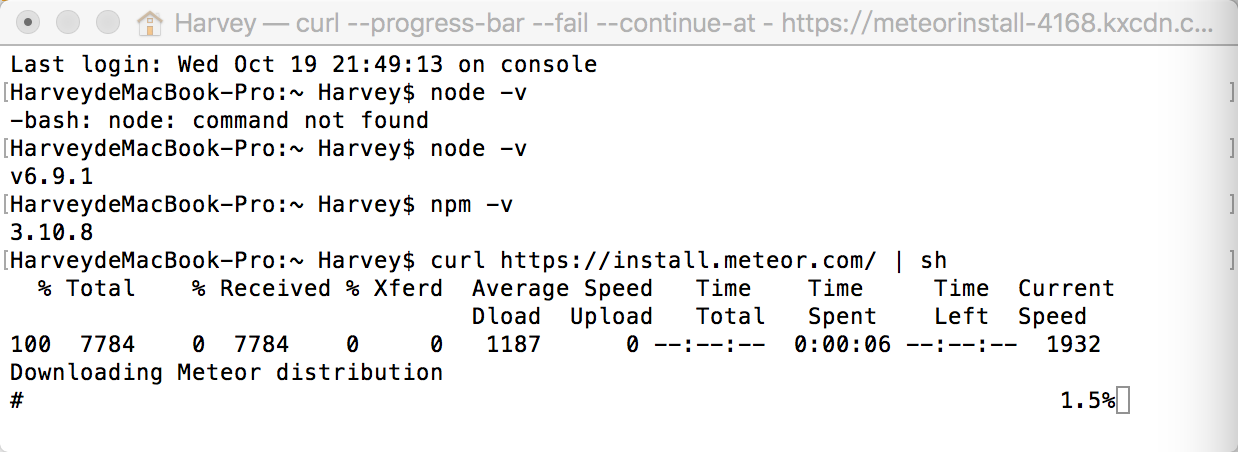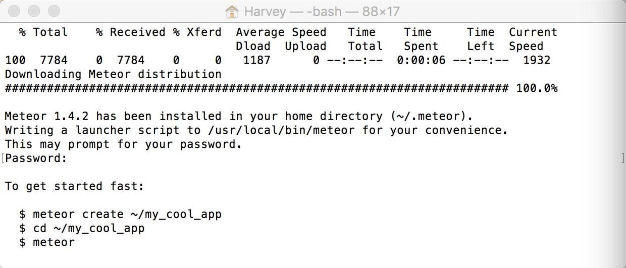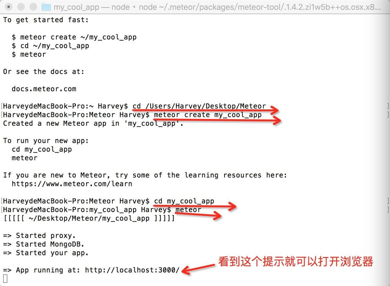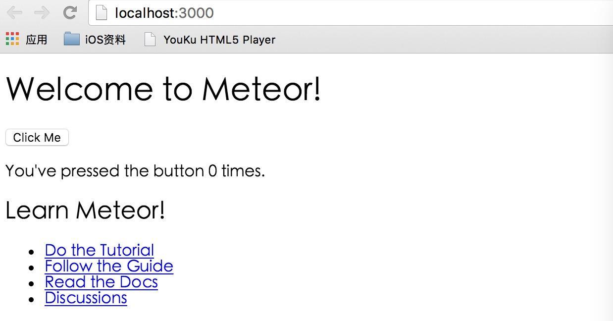 一般说来到这里,Meteror环境已经安装好了,我们可以先创建一个小工程,测试一下Meteor的环境,以确保Meteor环境正常(因为后面安装Rocket.chat会出现各种错误,导致你怀疑Metor有问题)。