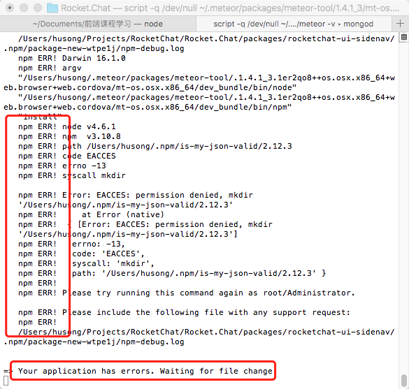 在执行meteor 命令,运行时可能会遇到如下的错误信息: