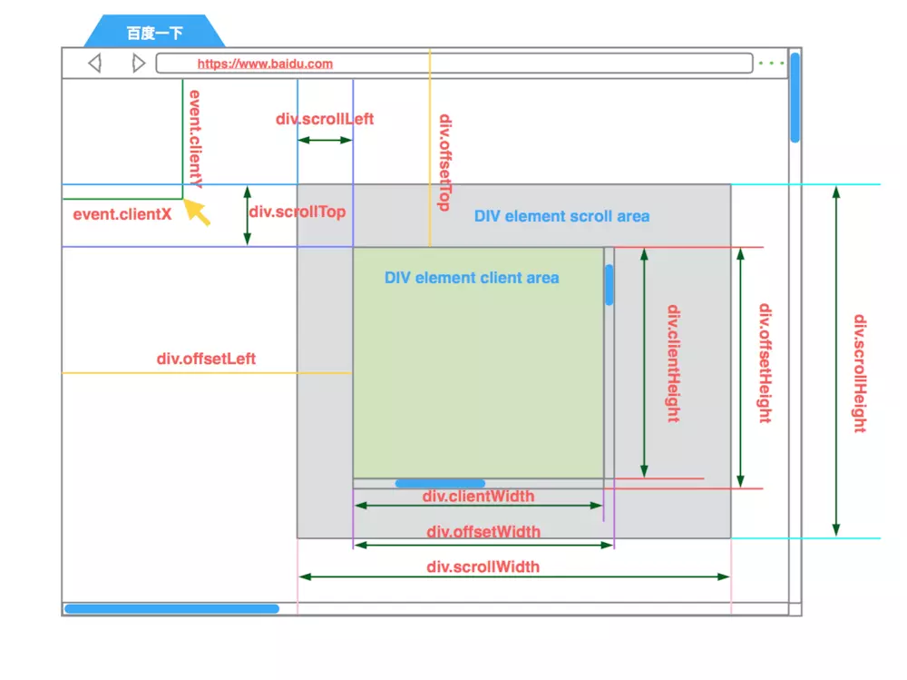 pageX/Y获取到的是触发点相对文档区域左上角距离,会随着页面滚动而改变