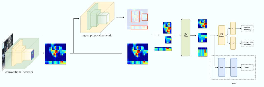 因为 R-CNN 在目标检测任务上很好的效果,把 Faster R-CNN 用于实例分割是很自然的想法。但是 RoI Pooling 在用于实例分割时会有比较大的偏差,原因在于 Region Proposal 和 RoI Pooling 都存在量化的舍入误差。因此何恺明等人在 2017 年提出了 Mask R-CNN 模型。