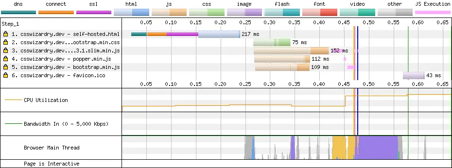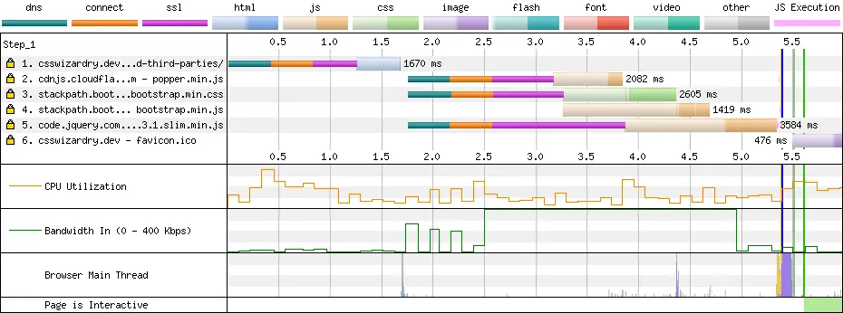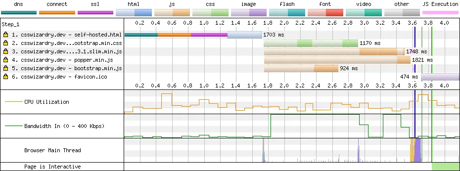 将资源移到自己的基础设施上会将加载时间从大约 5.4s 降到仅仅 3.6s。