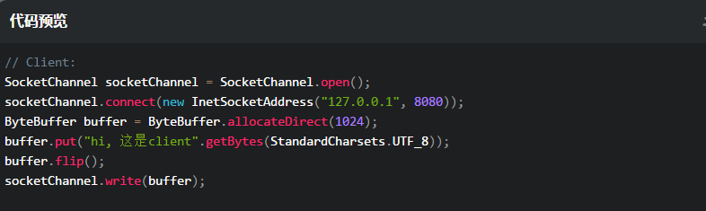 同样与Buffer配合,Channel使用write方法可以把数据从Buffer写到Channel里,然后后续就可以做网络传输了。