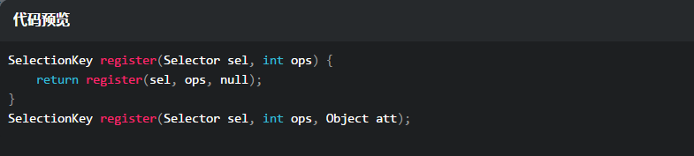 第三个参数att是attachment的缩写,代表可以传一个“附件”进去。在返回的SelectionKey对象里面,可以获取以下对象: