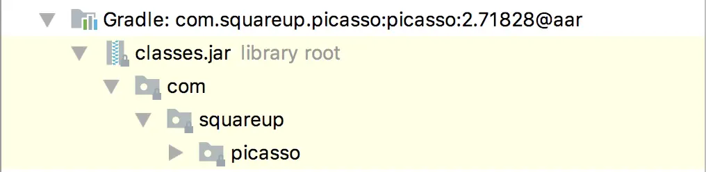 这里我们在Project视图下,打开External Libraries目录,找到picasso依赖文件,如下所示: