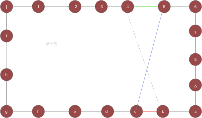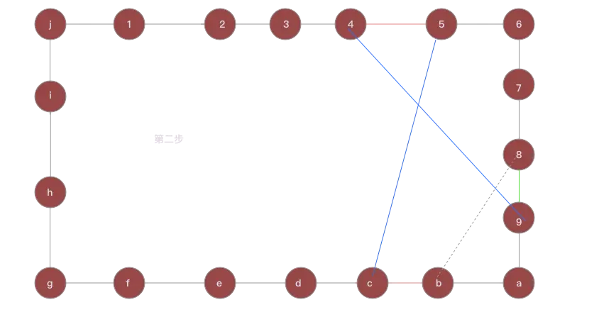 - 此时, 还需记录一个判断就是蓝线+虚线是否小于红线+绿线. 如果小, 那么这就是一次完美的二交换, 不论是否小, 都要继续进行下去.