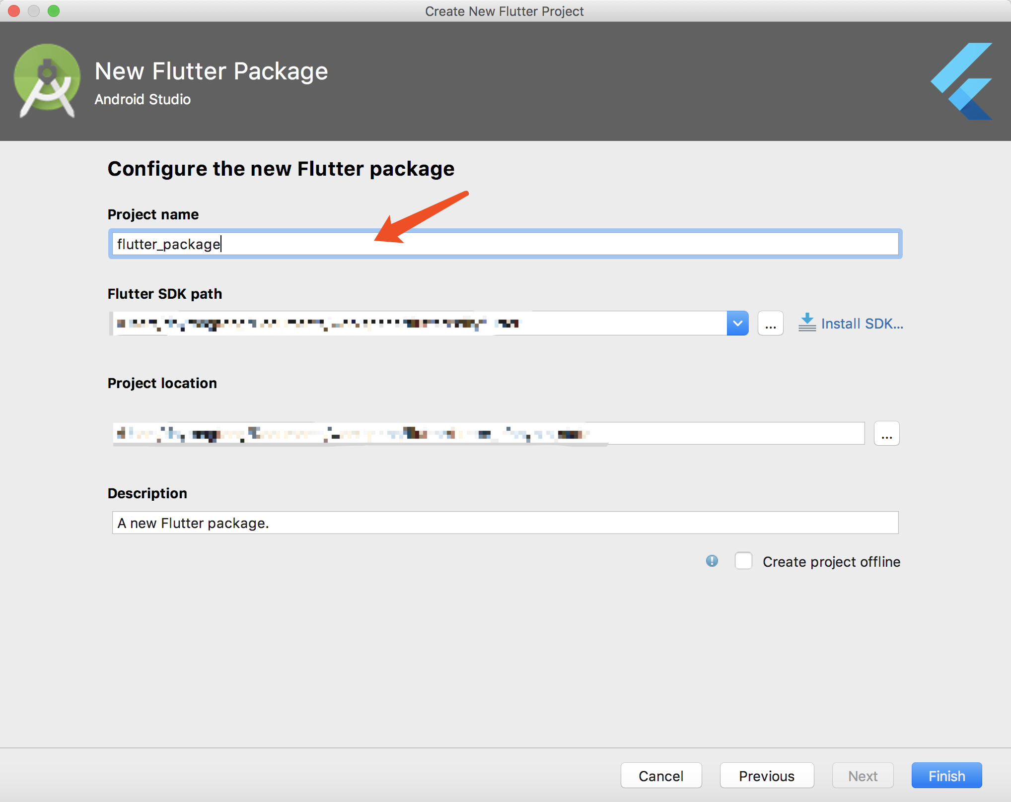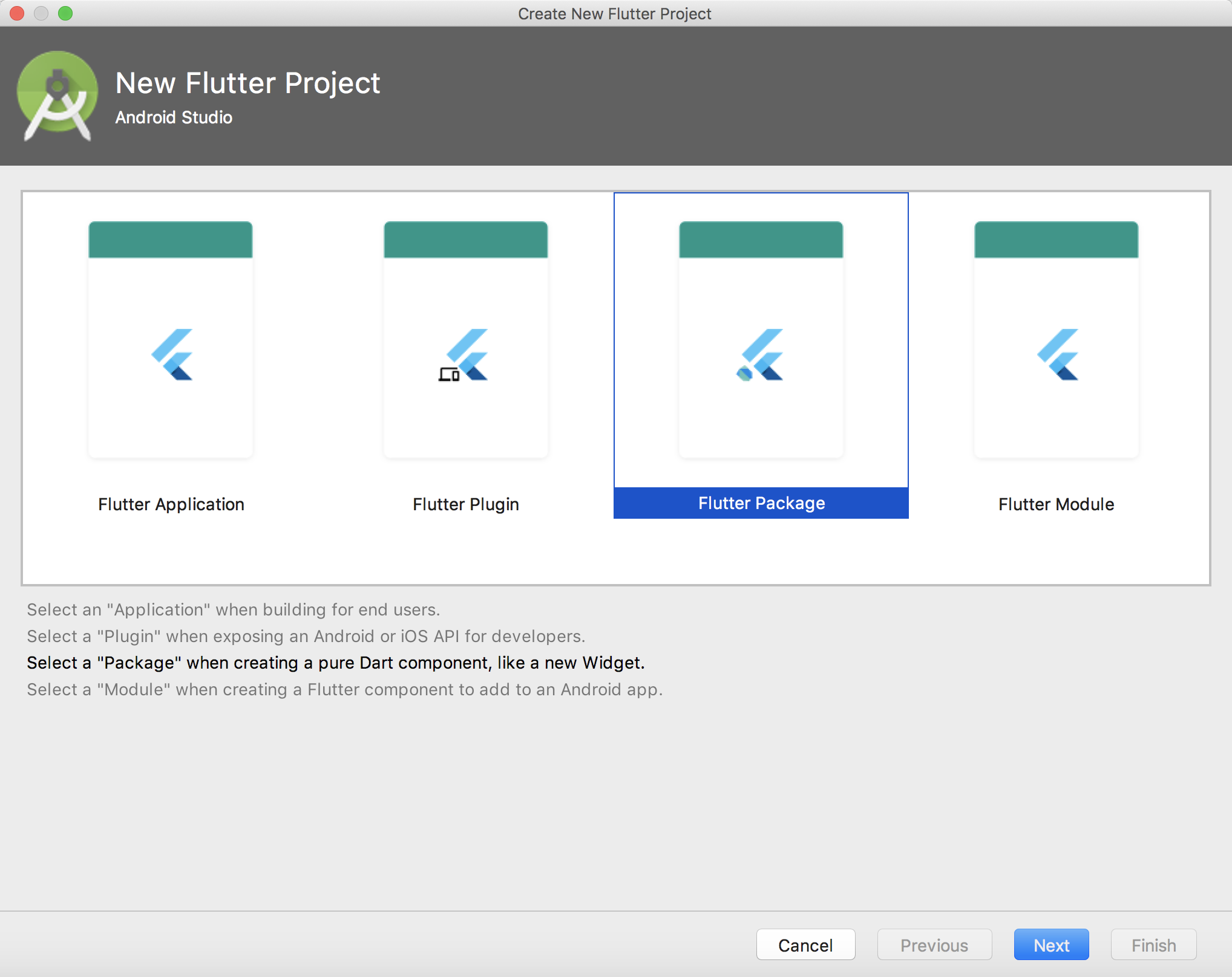 - 在弹出的面板里选择 Flutter Package,点击 next。