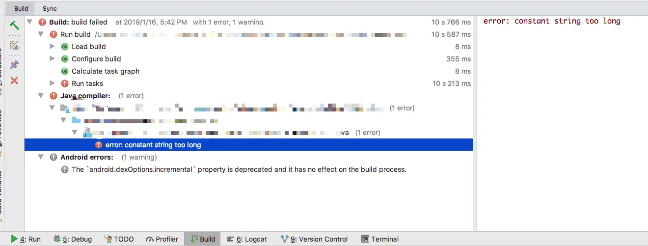 这个错误如何规避呢?在Android中,将这个字符串写入资源文件,然后在运行期间获取即可规避这个限制。