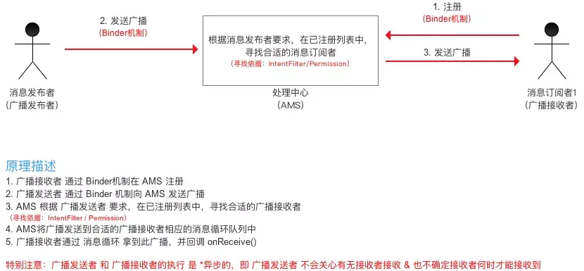 注:对于LocalBroadcastManager方式发送的应用内广播,只能通过LocalBroadcastManager动态注册,不能静态注册