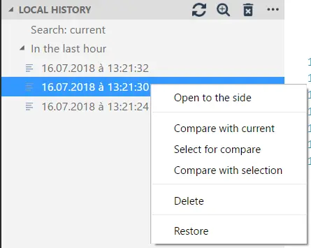 local history ( vscode拥有本地恢复的某一时刻能力)