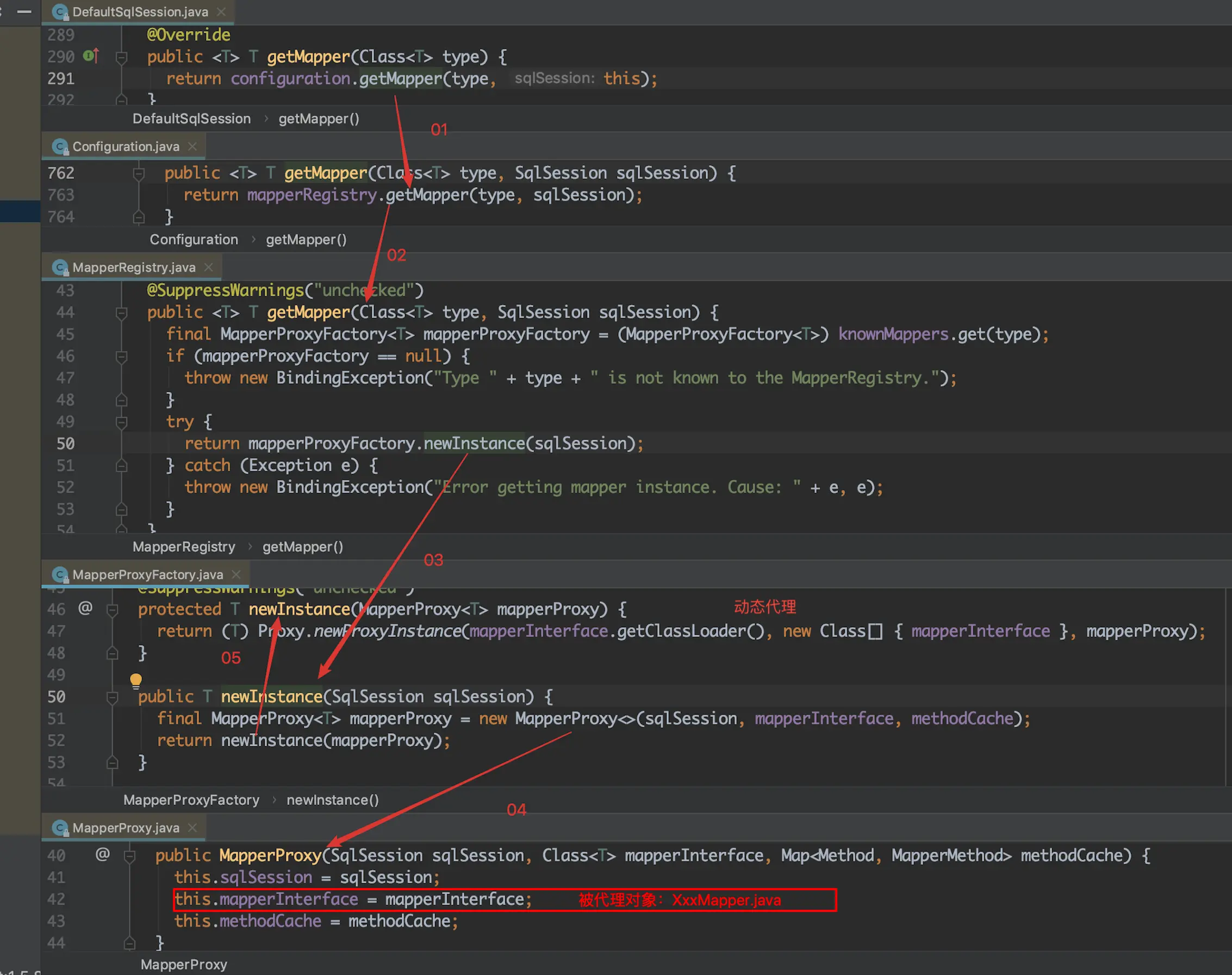 SqlSession sqlSession = sqlSessionFactory.openSession(); - 第四步:根据Mapper接口类获取实现类(动态代理生成的对象);