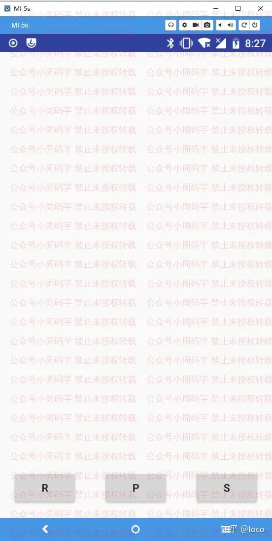 这个APP是一个石头剪子布的游戏,点击下面三个按钮分别选择石头、剪子、布,玩起来的时候是这么一个效果(加号后面的是得分值,正常情况下连胜会每次在原来的基础上+1):