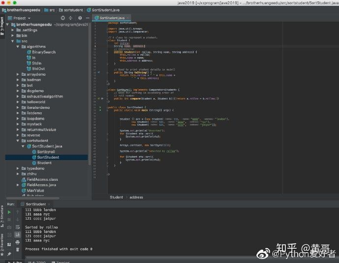 黄哥Python:初学编程的朋友来做题 罗王的新贵 2019-07-10 117 阅读1分钟 原文链接: zhuanlan.zhihu.com 初学编程的朋友来做题,设计一个学生类(姓名,身高二个属性),一个list,全部是学生类的实例对象,调用sort()方法按照身高排序。图片中是Java 代码,可以参考。你可以用Python 或Go 语言实现。