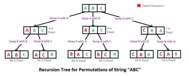 //那么j=0,swap(ch,0,0),就是['a','b','c'],进入递归,自己调自己,只是i为1,交换(0,0)位置之后的状态我称为 状态B