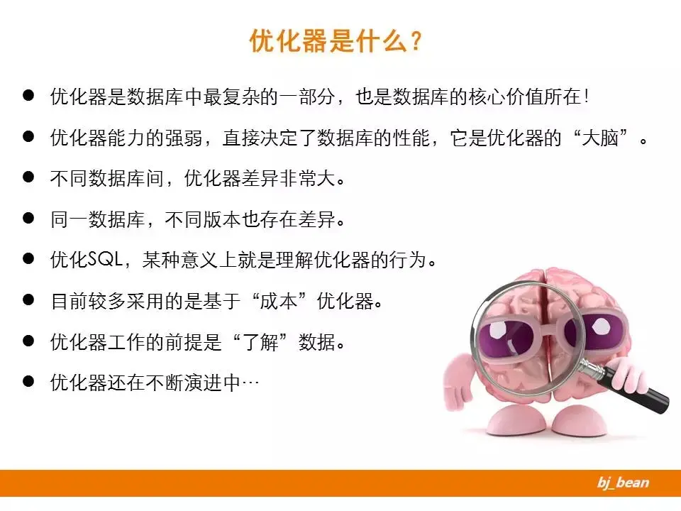 的确现在有些工具可以为我们减少些优化分析工作,会自动给出一些优化建议。但是,作为DBA来讲,不仅要知其然,还要知其所以然。况且,数据库优化器本身就是一个非常复杂的组件,很难做到完全无误的优化,这就需要人工的介入,分析。