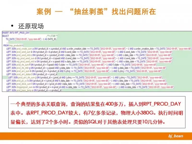 这里会描述一次完整的优化过程,看看DBA是如何“抽丝剥茧”,发现问题本质的。