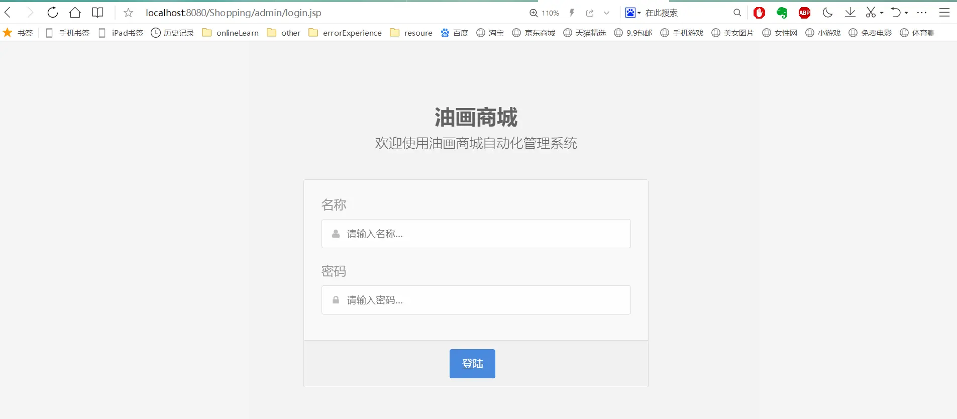 之后输入localhost:8080:/Shopping/admin/login.jsp 就会出现这种情况 如图: