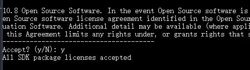 好吧,阅读英文,先解决第二个吧,说是 Android 许可证没被接受是吧,那就按照提示的说,运行 flutter doctor --android-licenses。