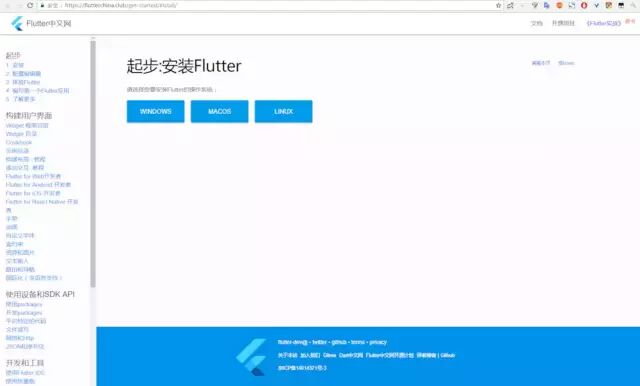 首先,当然就是 搭建环境,打开 Fuller 中文网,地址是:https://flutterchina.club/get-started/install/,我的是 Windows 系统~