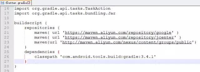 搜到的 Flutter 踩坑记也都说是这种原因,网络限制,拉取不到需要的 jar 包,于是,照着别人说的改呗,从 aliyun 拉取。