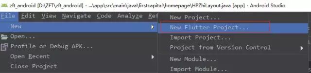 一切准备完毕,终于要开始创建应用啦。打开 AS,File -> New Flutter Project。