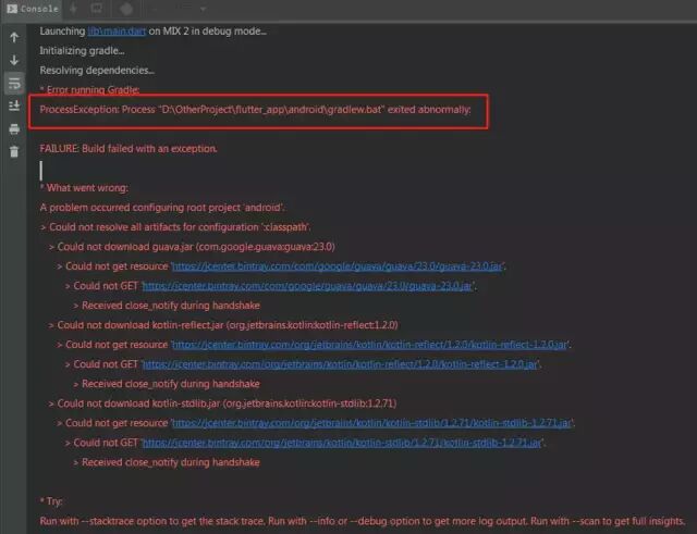 大坑又来了,跑不起来,copy 下图框住的英文搜索,其实这里下面 wrong 的提示也可以发现,貌似是从 jcenter 上拉不下来一下 jar 包。