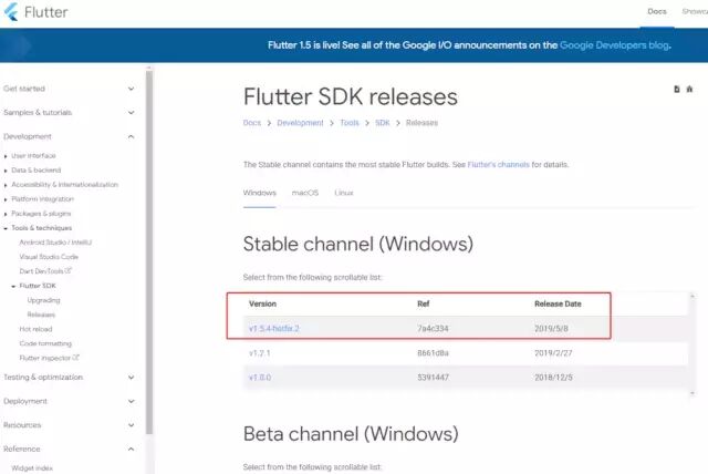 接下来,下载 Flutter SDK下载地址:https://flutter.dev/docs/development/tools/sdk/releases#windowsor https://github.com/flutter/flutter/releases那我就下载个最新的稳定的版本,这个名字看起来是修复了啥bug的,下载共 470.21M,啧啧啧~