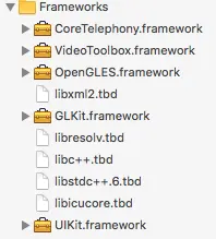 首先,把WebRTC的静态库加进项目之后,需要添加相应的系统依赖库: