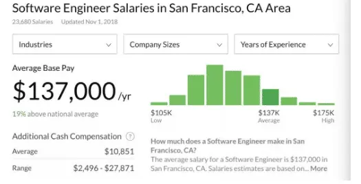 一直以来,程序员都被视为高收入群体,在旧金山湾区,程序员entry-level的平均收入高达 $137k。