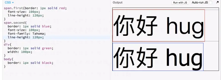 - font-size:100px;指的是字体最高到最低的高度,不是行高(不包括多余的空部分)