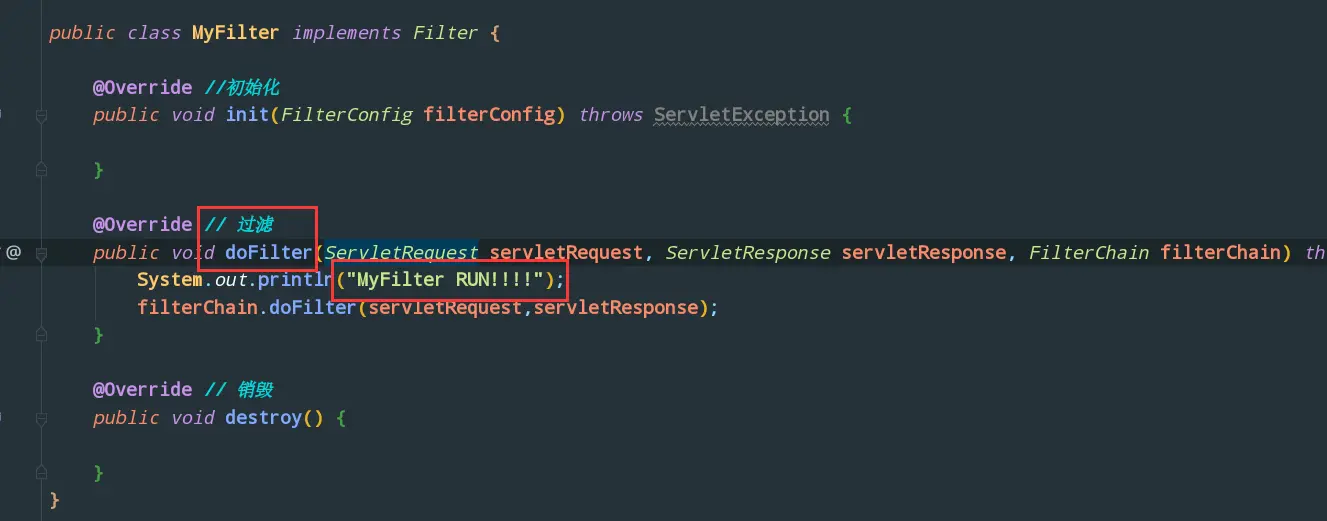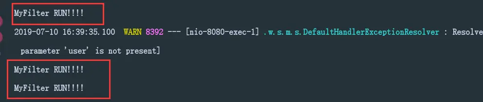 打印出了 MyFilter RUN!!!! 说明刚才的 doFilter 执行了!
