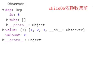 childOb是标志属性值是否为基础类型的标志,observe如果遇到基本类型数据,则直接返回,不做任何处理,如果遇到对象或者数组则会递归实例化Observer,会为每个子属性设置响应式数据,最终返回Observer实例。而实例化Observer又回到之前的老流程: