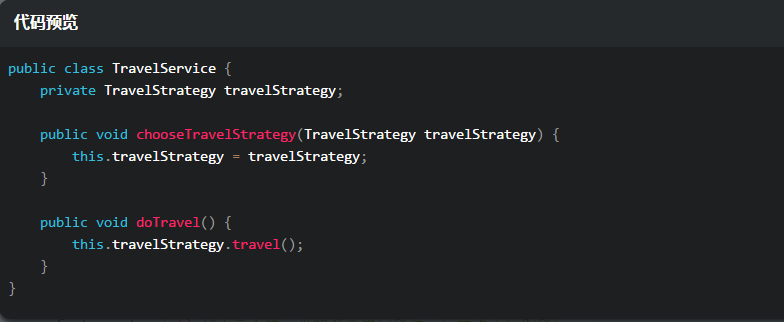 接着就需要实现出行助手类:TravelService,它内部通过代理TravelStategy来切换不同的策略: