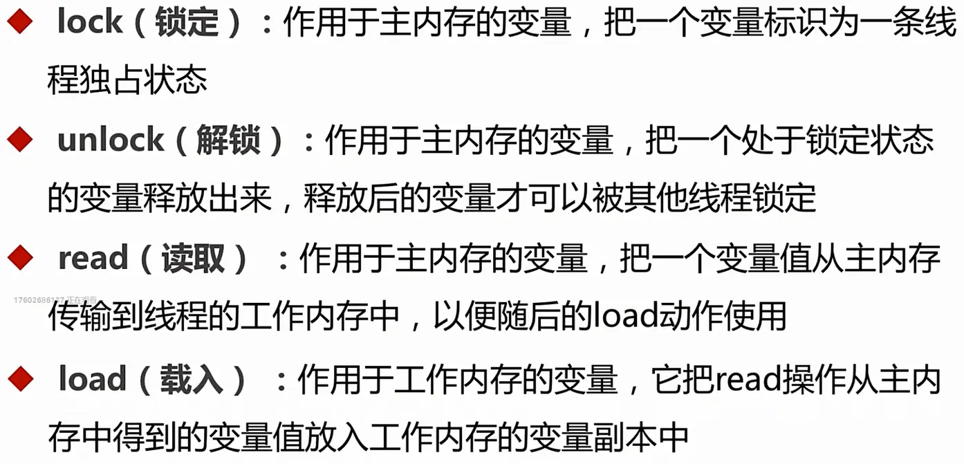 6.一个变量没有被Lock时不允许对其执行Unlock,也不允许Unlock一个其他线程锁定的变量。对一个变量Unlock之前必须先把此变量同步回主内存。