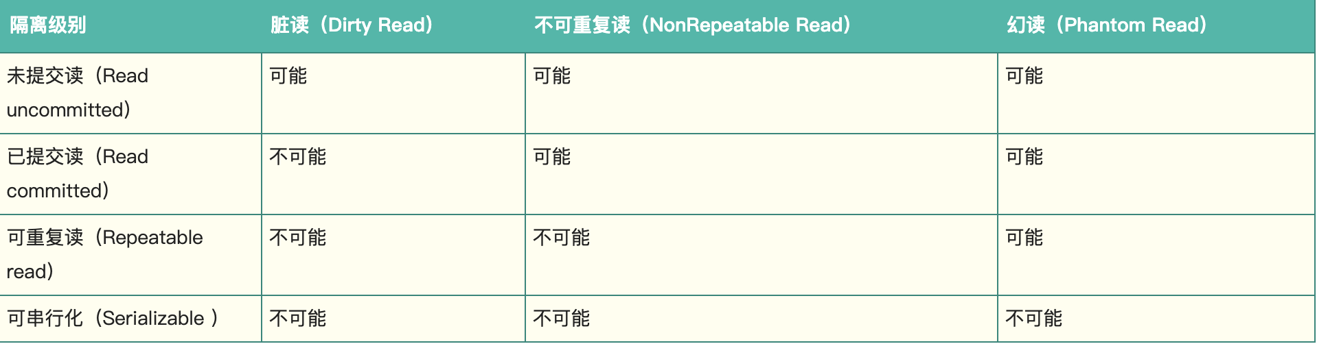 - 串行化(Serializable):完全串行化,获取表锁,读写都会阻塞。