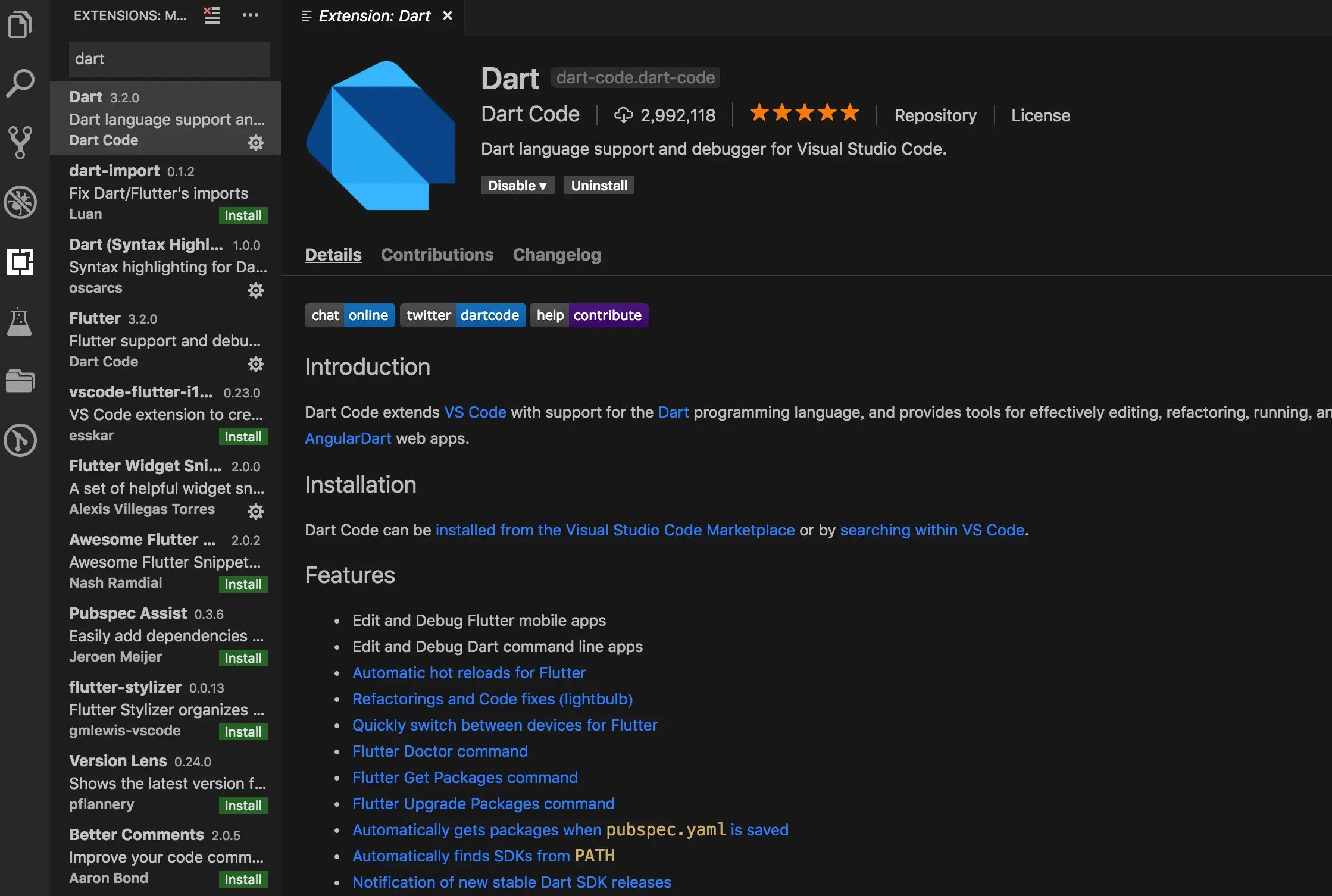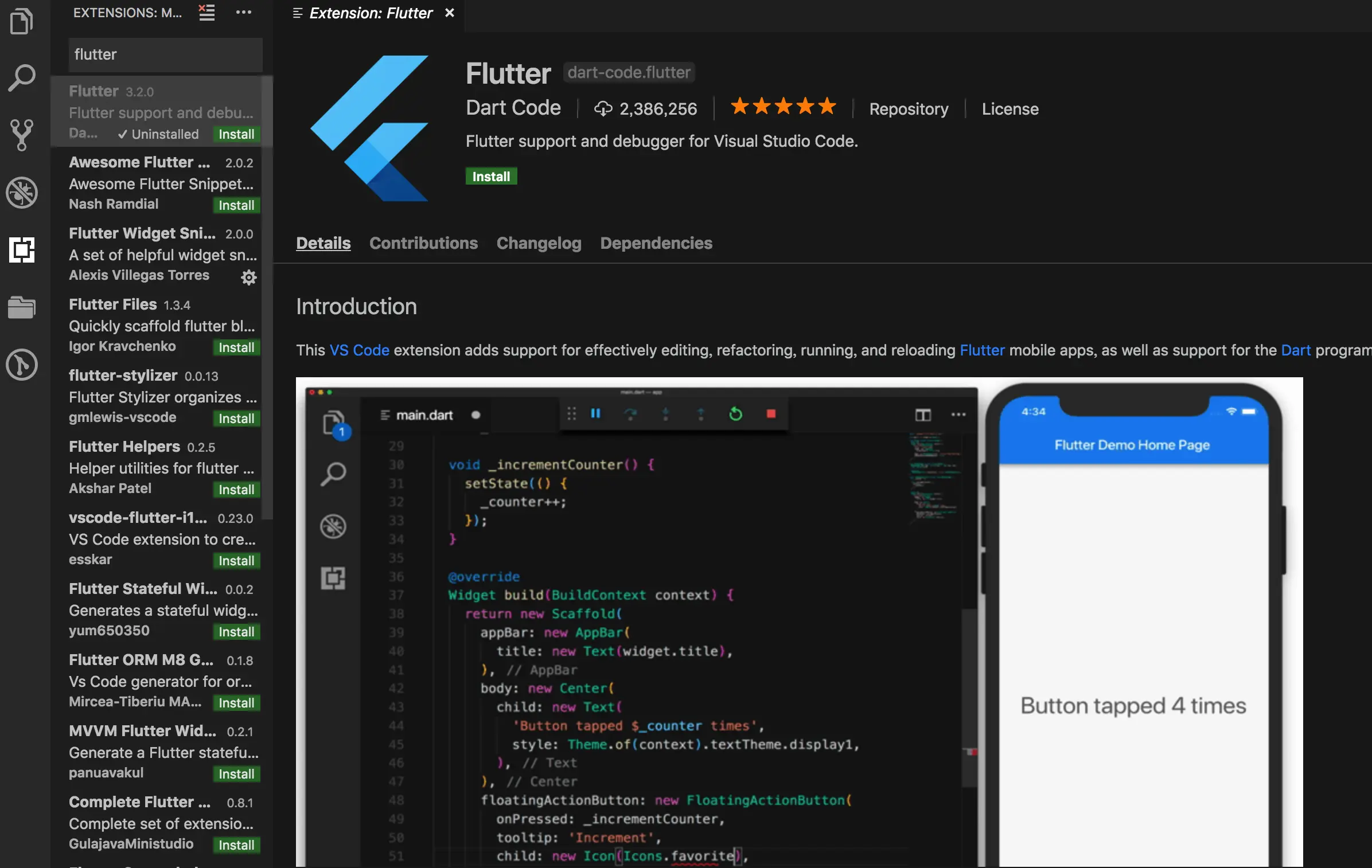 输入flutter 点击install2. Dart插件——提供Dart devTools